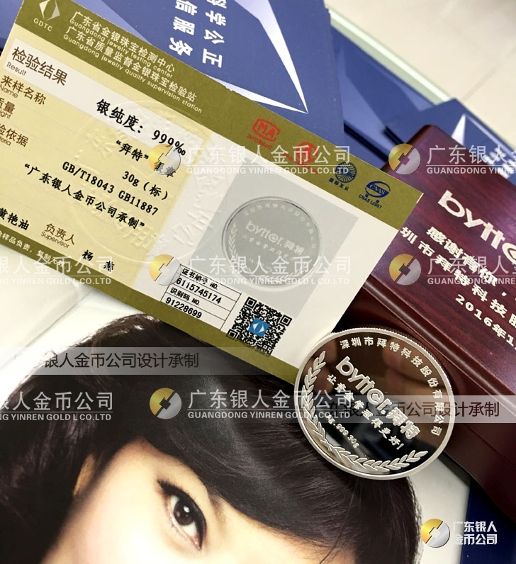 廣東銀人金幣公司承接客戶個(gè)性化定制的金銀幣、金銀章、金銀條、金銀牌、金銀盤(pán)均由國(guó)家質(zhì)監(jiān)部門(mén)、嚴(yán)格檢測(cè)、權(quán)威鑒定: