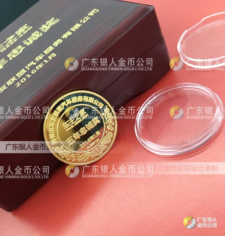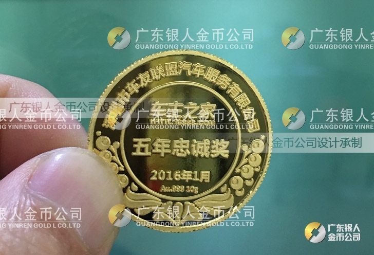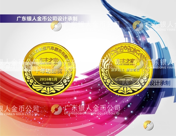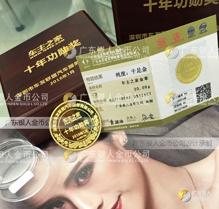 2016年1月訂制 深圳車主之家十年功勛獎黃金純金獎牌訂做