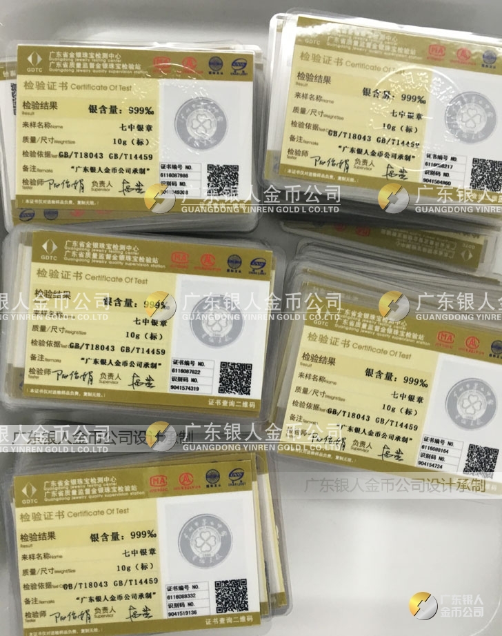 廣東銀人金幣公司承接客戶個(gè)性化定制的金銀幣、金銀章、金銀條、金銀牌、金銀盤均由國家質(zhì)監(jiān)部門、嚴(yán)格檢測、權(quán)威鑒定: