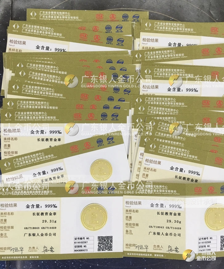 廣東銀人金幣公司承接客戶個(gè)性化定制的金銀幣、金銀章、金銀條、金銀牌、金銀盤均由國家質(zhì)監(jiān)部門、嚴(yán)格檢測、權(quán)威鑒定: