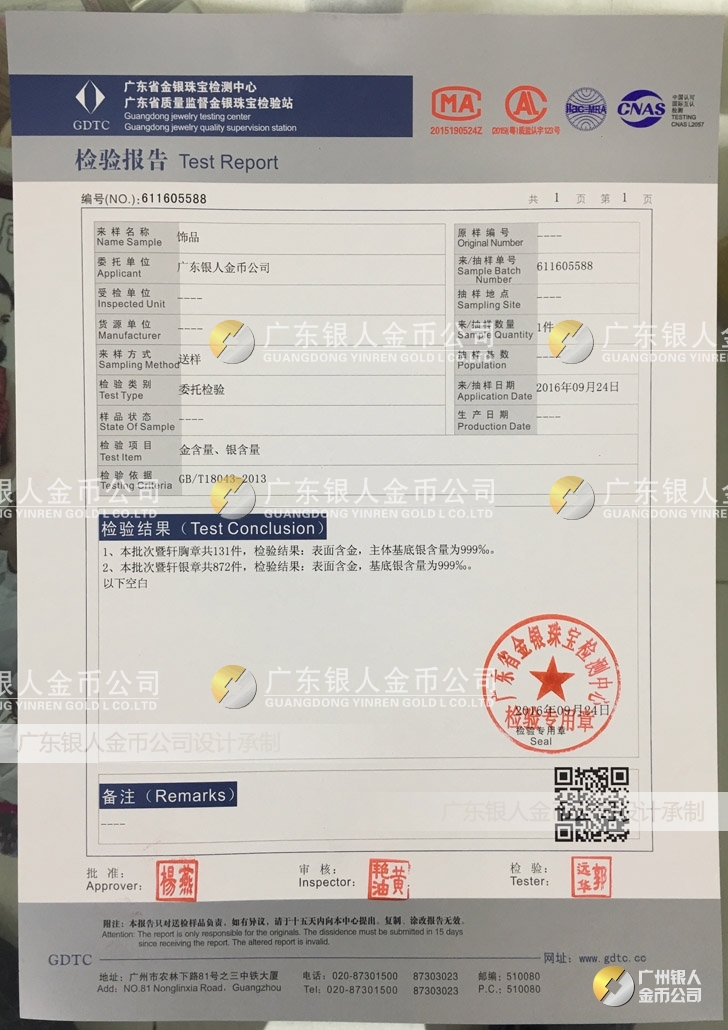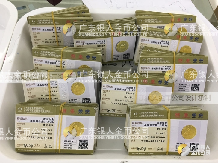 廣東銀人金幣公司承接客戶個性化定制的金銀幣、金銀章、金銀條、金銀牌、金銀盤均由國家質(zhì)監(jiān)部門、嚴格檢測、權(quán)威鑒定: