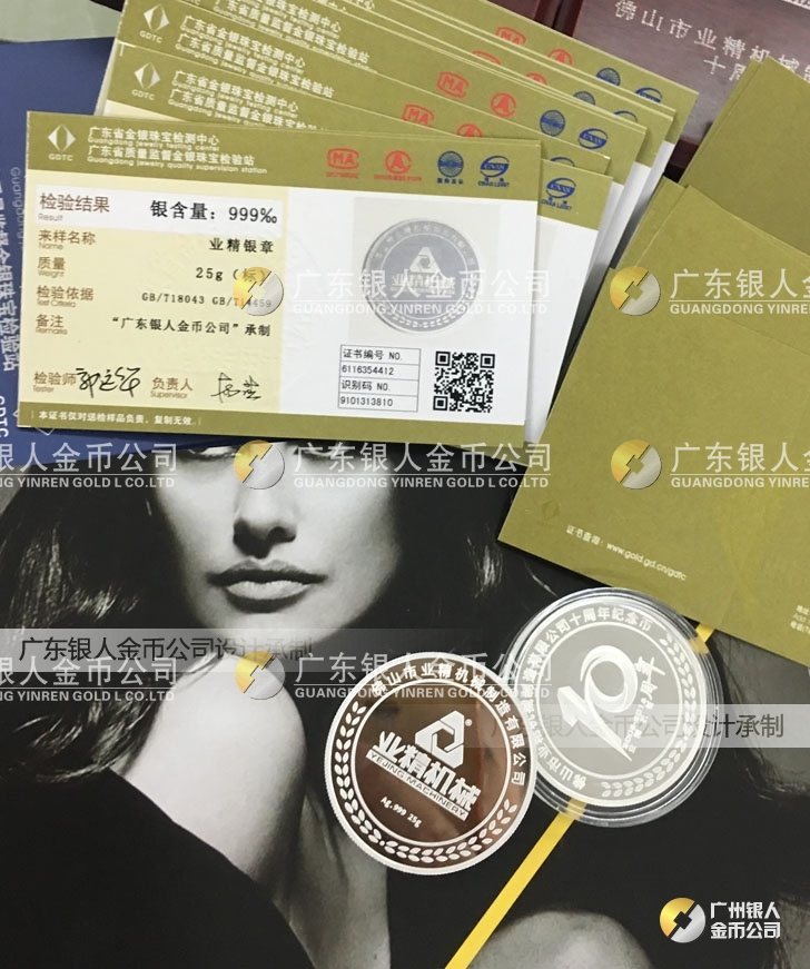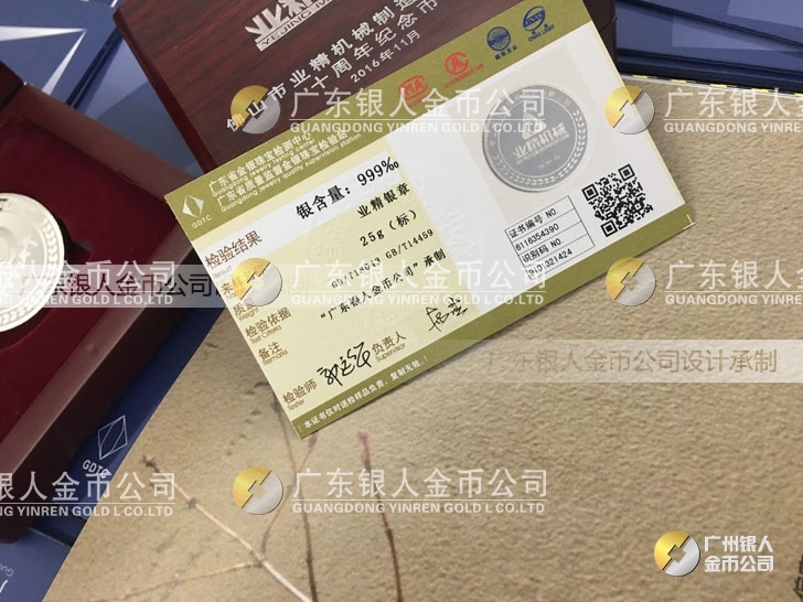 廣東銀人金幣公司承接客戶個(gè)性化定制的金銀幣、金銀章、金銀條、金銀牌、金銀盤均由國(guó)家質(zhì)監(jiān)部門、嚴(yán)格檢測(cè)、權(quán)威鑒定: