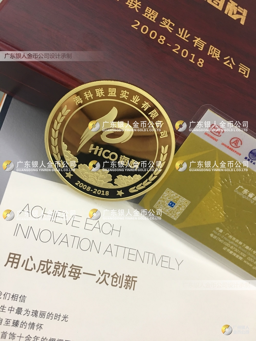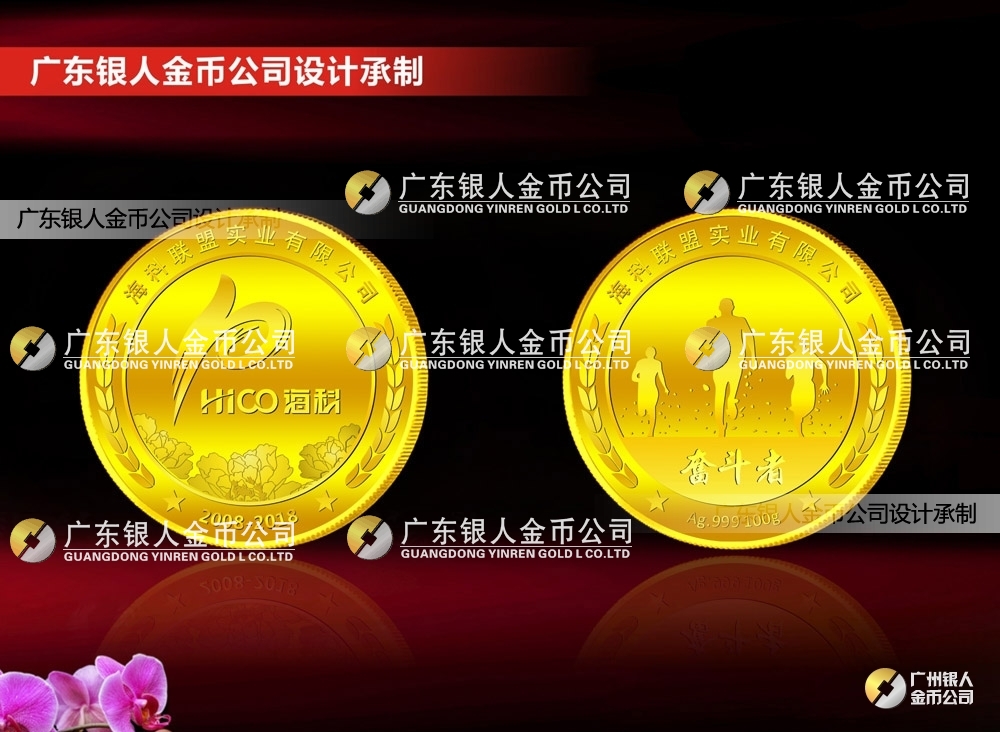 大連??坡?lián)盟主攻房地產(chǎn)、醫(yī)院、樓盤導(dǎo)向標識、標牌工程項目,委托我司設(shè)計制作公司10周年紀念金銀幣定制。