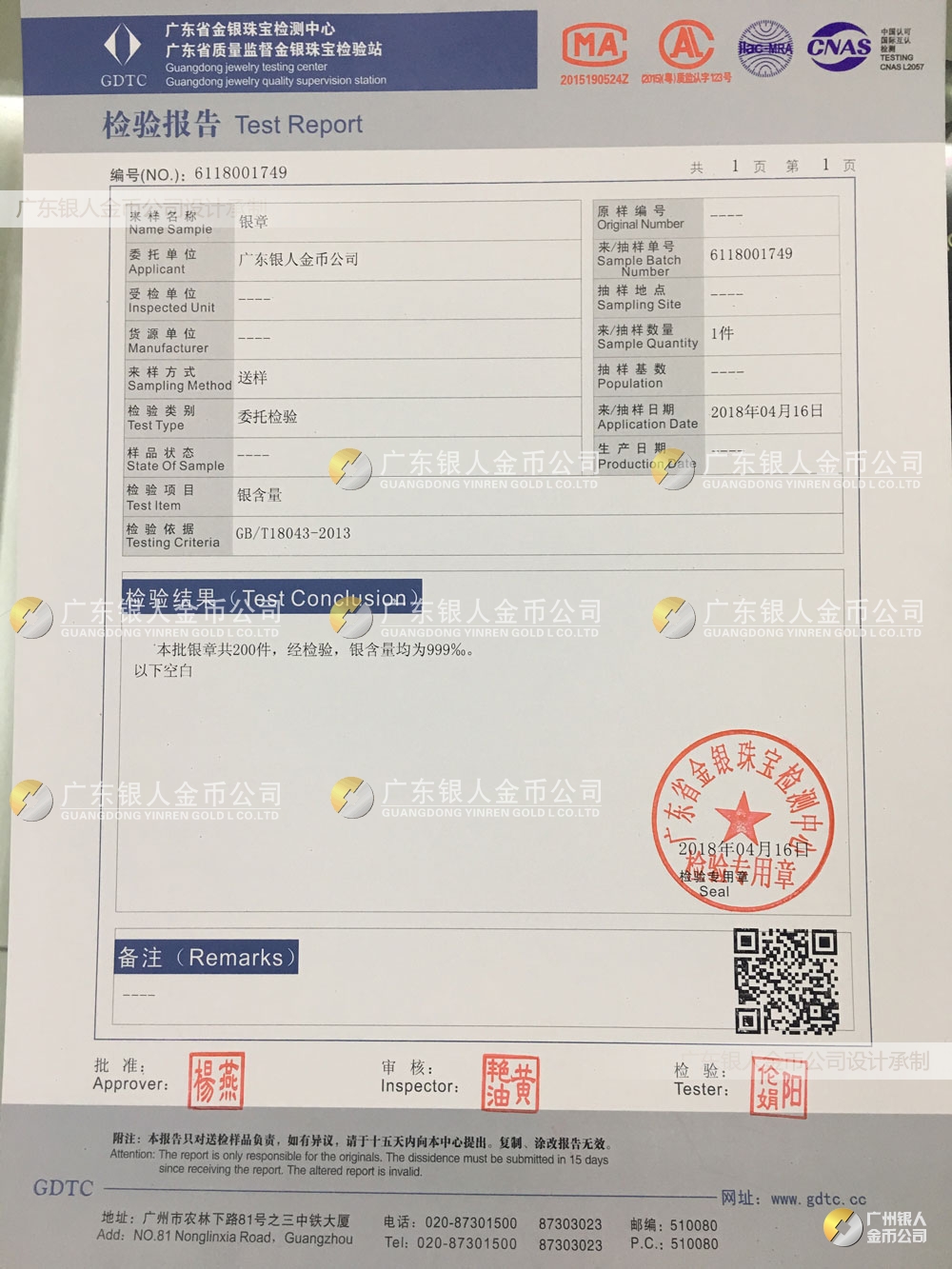 國(guó)家金銀質(zhì)量檢測(cè)中心金銀質(zhì)量檢驗(yàn)報(bào)告