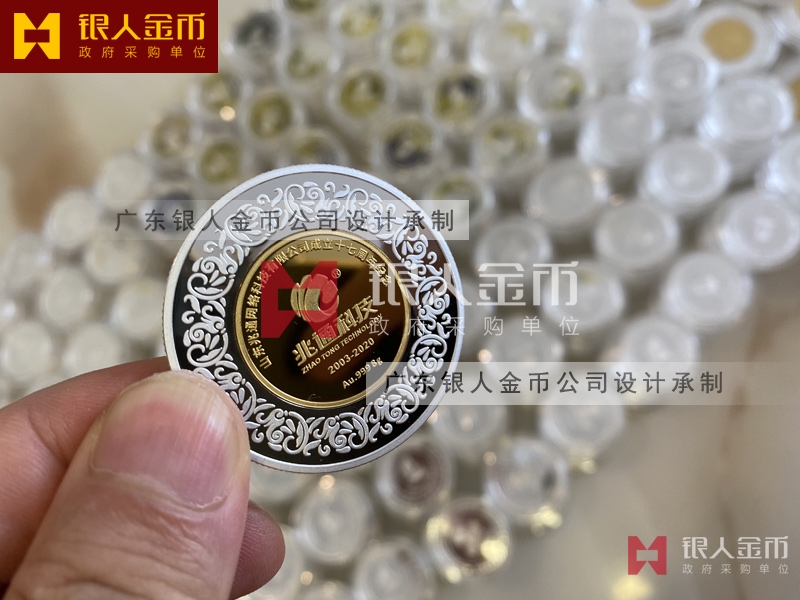 兆通公司周年紀念章銀鑲金紀念章定制