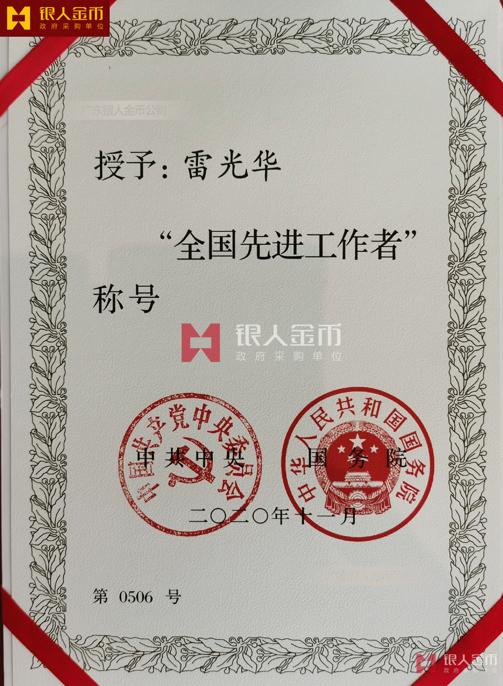 【獎(jiǎng)?wù)轮谱鳌?廣東銀人金幣公司-榮譽(yù)獎(jiǎng)?wù)轮谱鲝S家