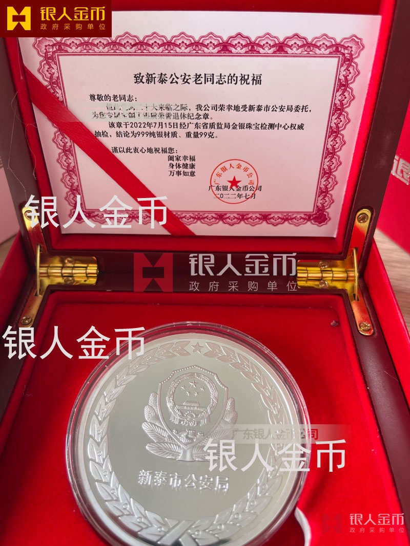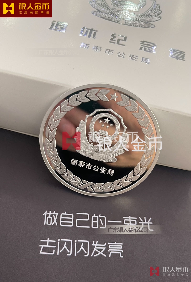 山東省公安廳泰安市新泰市公安局公安機(jī)關(guān)民警退休紀(jì)念章定制_從警年限紀(jì)念榮譽(yù)章_警察從警30周年40周年紀(jì)念章定制_干警光榮退休紀(jì)念章定做訂制制作