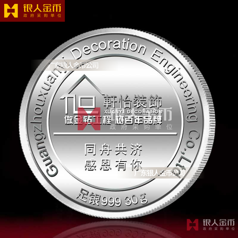 廣州軒怡裝飾蝸窩家公司年會(huì)紀(jì)念銀幣定制_公司周年慶銀幣定做_純銀牌定制
