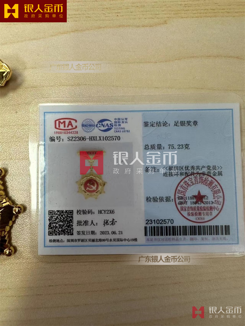 國家金銀質(zhì)量檢測中心金銀質(zhì)量檢測證書