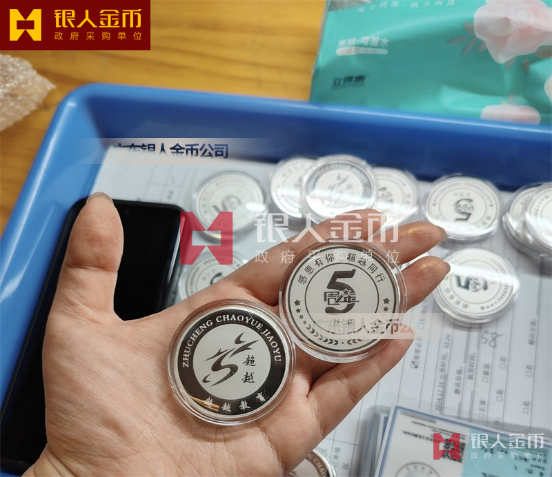佛山超越教育5周年紀(jì)念銀幣定制_員工入職五周年紀(jì)念幣定制_員工工作滿5年銀牌定制_5年員工銀幣定制_入職紀(jì)念銀幣定制