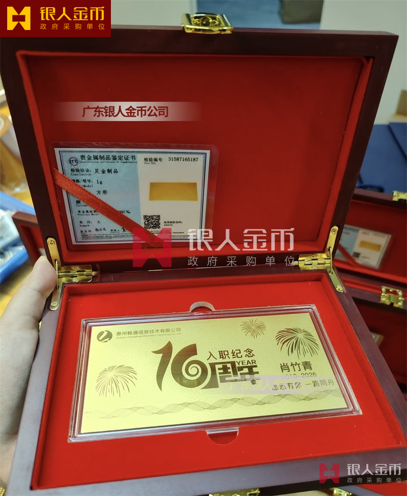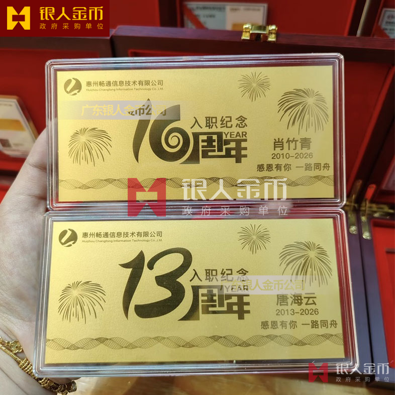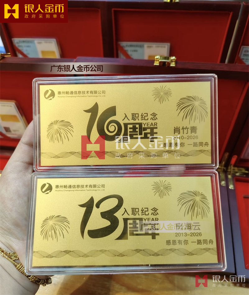 惠州暢通信息公司員工入職10周年紀(jì)念黃金金卡定制_純金金卡定制_千足金紀(jì)念卡定制_千足金金卡定制_入職紀(jì)念金鈔定制