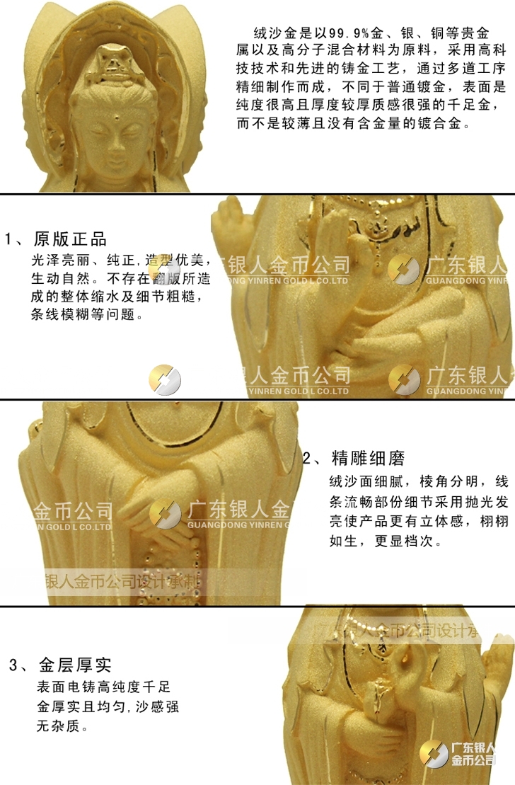 純金觀音、千足鑄金觀音擺件、絨沙金觀音佛像